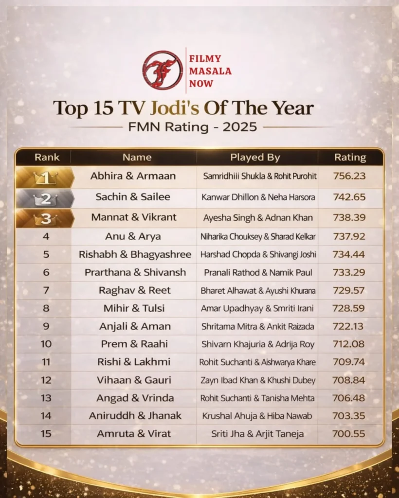 The FMN Ratings have spoken loud and clear. Abhira & Armaan, Sachin & Sailee, Mannat & Vikrant, Anu & Arya, and many more memorable onscreen couples have ruled hearts and screens throughout the year. The “Top 15 TV Jodi’s Of The Year FMN Rating – 2025” list highlights chemistry, performance, popularity, and consistency, making it one of the most awaited rankings of the television year.